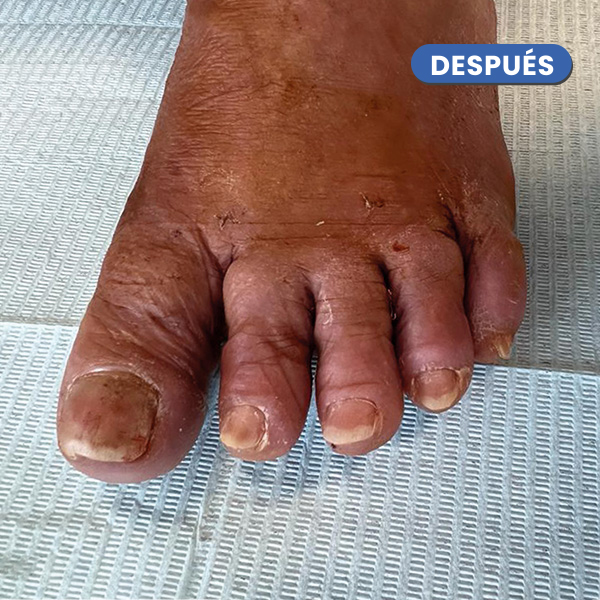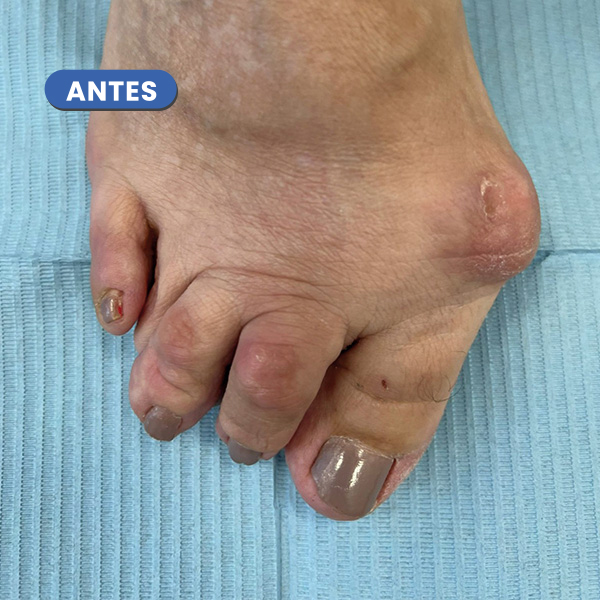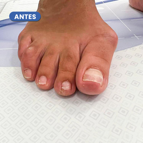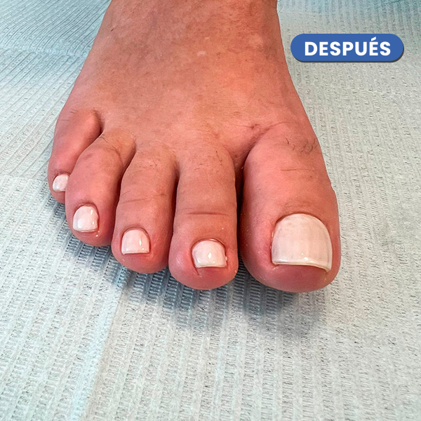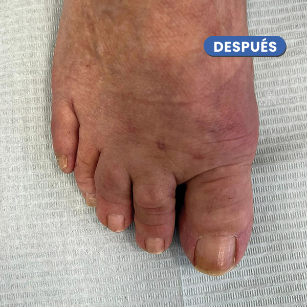 En la imagen cabe destacar la desaparición del juanete y del heloma o cayo sobre el cuarto dedo.