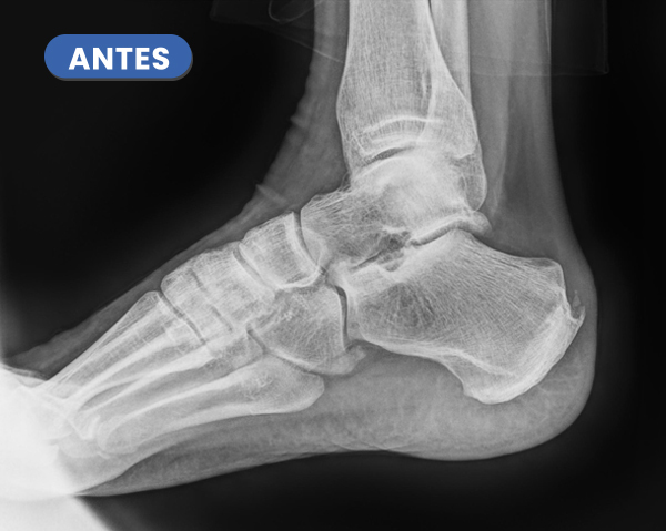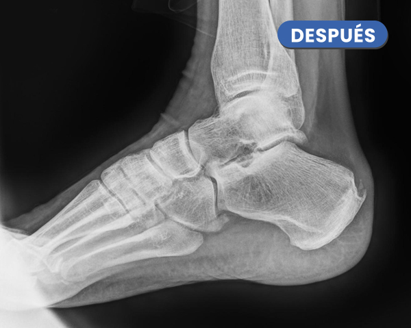 Se puede visualizar la desaparición de la prominencia ósea en la parte posterior del talón, justo donde se encuentra el tendón de Aquiles, dejando espacio libre a los tejidos blandos de alrededor, desapareciendo la inflamación, dolor y dificultad para caminar.
